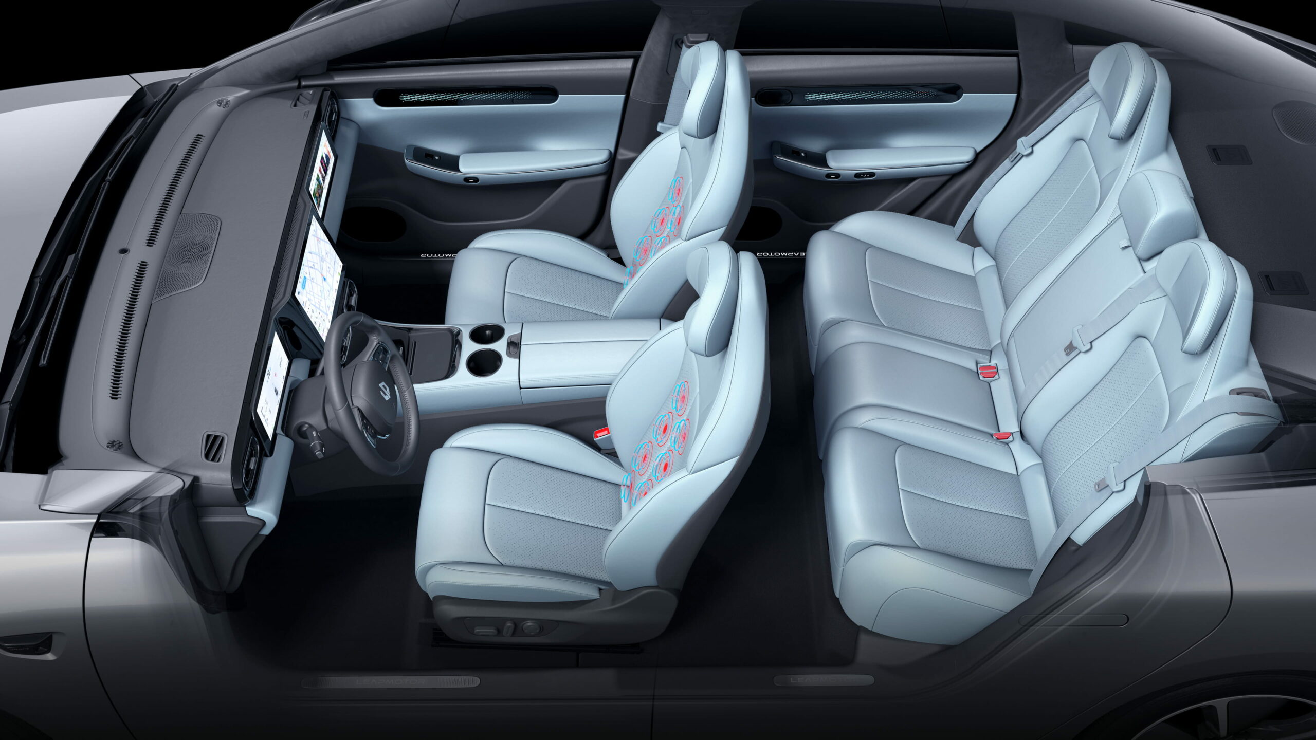野外商务场景中,零跑C01在商务招待之时,经过手机控车功用即可长途敞开车内空调、座椅通风等功用;需求充电时,30多分钟即可从30%充电到80%;车长5050mm的超大车身尺度以及合理布局,并合作Nappa真皮的CEO专座和135项NVH优化。